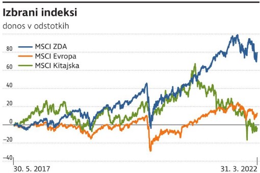 Kaj je torej všteto v padce tečajev delnic? Zagotovo so to grožnja recesije na neki srednji rok, grožnja stagflacije, predvidevanja, da se disrupcije v dobavni verigi še ne bodo prav kmalu razrešile, ne nazadnje grožnja energetske krize in pa rusko-ukrajinska vojna, katere razplet je neznanka.