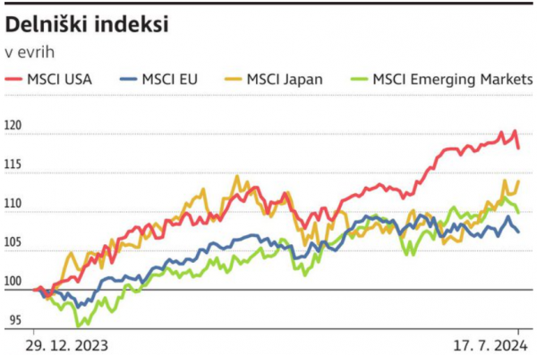 Julija borzni indeksi nadaljujejo svojo rast, izmed regiji pa je daleč najboljša Japonska, medtem ko je zaradi slabših ekonomskih kazalnikov opaziti slabše donose kitajskih podjetij. Ameriški osrednji indeks S&P 500 je ta mesec dosegel rekordne vrednosti, vlagatelji pričakujejo, da bodo podjetja presegla pričakovanja glede zaslužkov.