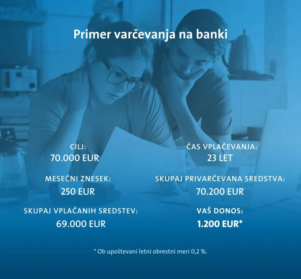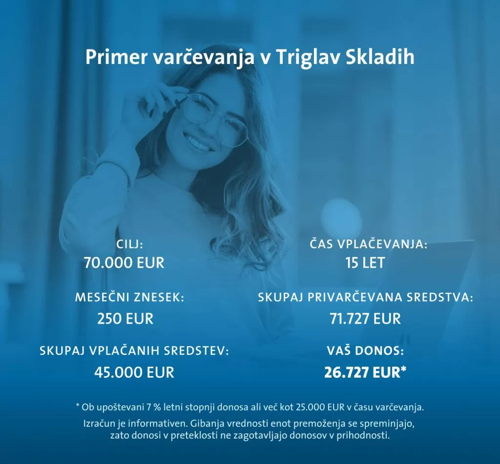 mesečni vložek: 250 evrov,