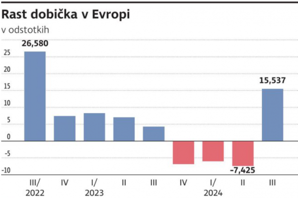 Po podatkih Bloomberga je v indeksu ameriških delnic MSCI USA do 18. oktobra rezultate poslovanja objavilo 68 podjetij, kar predstavlja približno 11 odstotkov vseh predstavnikov indeksa, medtem ko je v indeksu evropskih podjetij MSCI Europe rezultate objavilo 27 podjetij ali okrog osem odstotkov vseh predstavnikov indeksa. Največji delež objav v ZDA je bil pri sektorju financ (četrtino predstavnikov), kjer so banke poslovale večinoma nad pričakovanji, z rastjo dobičkov približno 5,5 odstotka, rezultat pa je presegal napovedi analitikov za kar 9,2 odstotka. Na ravni indeksa MSCI USA za zdaj znaša rast dobičkov v kvartalu 3,5 odstotka, ob preseganju napovedi za 6,6 odstotka. V Evropi je bilo manj objav, trenutne številke pa kažejo na 4,5 odstotka rast dobičkov ob 2,2 odstotka preseganju napovedi analitikov. Glavni pozitivni prispevek k rasti dobičkov v prejšnjem kvartalu bosta predvidoma prispevala sektorja komunikacij in potrošnje, negativni prispevek pa bo izhajal iz sektorjev energija in materiali.