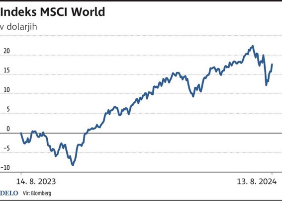 Naj samo spomnim, da so bila leta 2022 pričakovanja o možnosti recesije 80-odstotna, zato so od začetka leta 2022 globalne delnice izgubile okrog 20 odstotkov vrednosti. Odpornost razvitih gospodarstev in rast prodaje podjetij je na delniške trge vrnila zaupanje in do sredine julija 2024 je globalni indeks razvitih trgov pridobil 37,5 odstotka, merjeno v evrih.