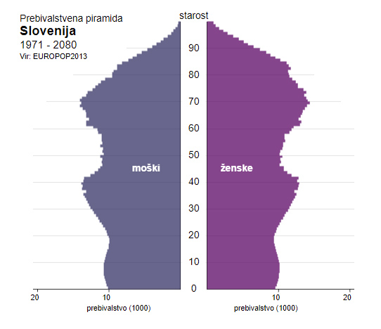 Pričakovana prebivalstvena piramida za Slovenijo leta 2050 (vir: stat.si)