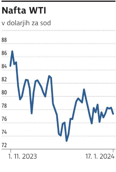 Geopolitična tveganja na Bližnjem vzhodu še naprej naraščajo. Napadi Hutijev v Rdečem morju so se okrepili, ZDA in Velika Britanija pa so se odzvale z izvajanjem zračnih napadov na Hutije v Jemnu. Napetost še povečuje dejstvo, da je Iran zasegel tudi naftni tanker v Omanskem zalivu.