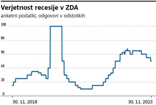 Kot vedno obstajajo tudi manj optimistična pričakovanja. Analitiki Morgan Stanleyja pričakujejo ničelno rast delnic v prihodnjem letu, skrbijo jih možnost gospodarske recesije, upad dobičkov ter nespremenjena denarna politika. Z najbolj pesimistično napovedjo tokrat izstopa JP Morgan Chase, kjer napovedujejo padec indeksa S&P 500 do konca leta 2024 na 4200, kar je približno osem odstotkov pod trenutno ravnjo. Razlogi, ki jih navajajo, vključujejo upočasnjevanje globalne rasti, upad varčevanja gospodinjstev ter visoka geopolitična tveganja, zlasti zaradi prihajajočih volitev, vključno z volitvami v ZDA, ki bi lahko dodatno prispevale k politični nestanovitnosti. Pričakujejo, da bo Fed kasneje začel sproščati denarne politike, s čimer se bo nadaljevalo zahtevno leto za delniške naložbe.