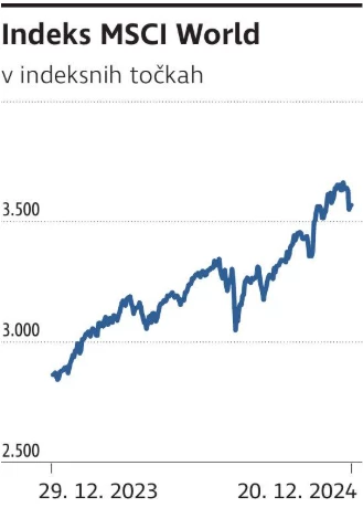 Ne glede na dogajanje v zadnjem tednu bomo leto 2024 zabeležili kot še eno od izjemnih glede na donosnosti. Donosnosti po posameznih naložbenih razredih: delnice v svetovnem delniškem indeksu MSCI World so bile lani dražje za 24,6 odstotka, evropske državne obveznice 2,5 odstotka, evropske podjetniške obveznice 4,5 odstotka ter zlato 34,5 odstotka. Regijsko so izstopale ameriške delnice v indeksu S&P 500 z 31,6-odstotnim donosom, predvsem zaradi velike uteži tehnološkega sektorja. Vse donosnosti so tekoče in izražene v evrih.