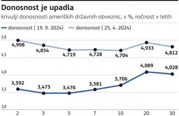 Na eni strani se inflacija zadnje mesece lepo znižuje in je v avgustu dosegla 2,5 odstotka, kar je blizu ciljni ravni. Po drugi strani se je trg dela nekoliko ohladil, saj je brezposelnost iz rekordno nizkih ravni zrasla na 4,2 odstotka. Kljub temu je ameriška ekonomija v zelo dobri kondiciji. V drugem četrtletju je zrasla za kar tri odstotke, preračunano na letno raven.