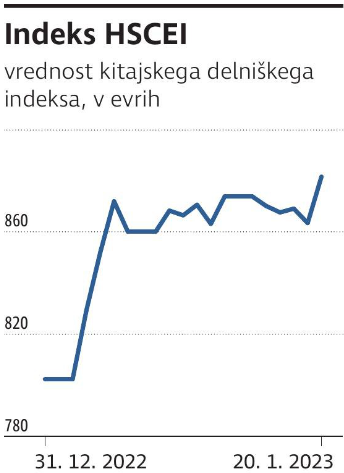 Delniški indeks HSCEI, ki meri gibanje delnic kitajskih podjetij, uvrščenih na borzo v Hongkongu, je od začetka koledarskega leta pa do začetka kitajskega novega leta pridobil 9,9 odstotka vrednosti, če merimo donose v evrih, in 11,6 odstotka vrednosti, če merimo donose v lokalni valuti, hongkonškem dolarju. Razliko gre pripisati apreciaciji evra proti ameriškemu dolarju, na katerega je vezana tudi vrednost hongkonškega dolarja.