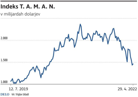 Da si lažje predstavimo premike v tečajnicah omenjenih podjetij, smo sestavili indeks iz delnic T. A. M. A. N. Indeks je vsota tržnih kapitalizacij posameznih »ravno pravih« delnic.