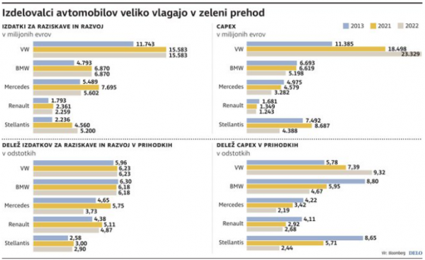 Finančna moč največjih proizvajalcev visoke rasti izdatkov vsekakor dovoljuje. Po okrevanju od leta 2013 dalje, ko je povpraševanje dosegla dno, so tako rekoč vsi močno popravili svoje bilance. Kljub težavam v pandemičnih letih in lanskoletne nižje prodaje zaradi težav pri dobavi imajo največji skupaj na voljo več kot 90 milijard evrov presežnih denarnih sredstev. Kako uspešna bodo posamezna podjetja v tej transformaciji, bo sicer pokazal čas, ustrezni nastavki za to vsekakor obstajajo.