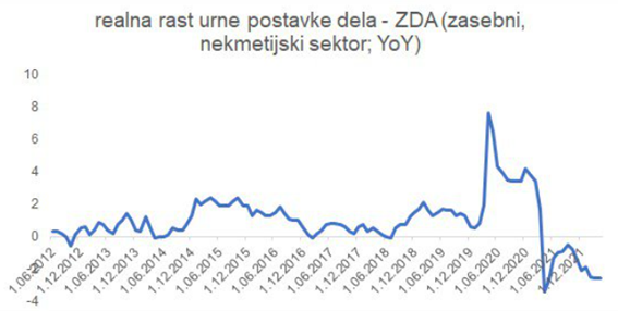 O umirjajočih pritiskih pričajo tudi cene javnosti manj vidnih dobrin: spot cene ladijskih kontejnerjev, ki so vstopni strošek številnih trajnih dobrin, so od rekorda lanskega septembra nižje za četrtino, kolikor so cenejša tudi gnojila v ZDA, ki so indikator prihodnih globalnih cen hrane. Ne nazadnje dejanskih pritiskov s trga dela (vsaj ameriškega) ni, realna rast tamkajšnjih plač je namreč še vedno negativna.