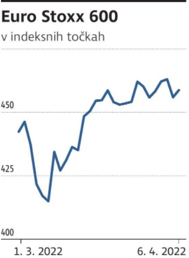 Evropske delnice so bile pod pritiskom pocenitev deloma zaradi vojne v Ukrajini, deloma pa tudi zaradi slabšanja makroekonomskega okolja in povišane inflacije. Inflacija, višja od pričakovane (v marcu bi naj znašala celo rekordnih 7,5 odstotka), pritiska tudi na Evropsko centralno banko in jo usmerja k vse manj ohlapnemu režimu delovanja.