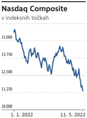 Širši ameriški tehnološki indeks Nasdaq je v tem obdobju izgubil malenkost več kot 20 odstotkov, od začetka letošnjega leta pa skoraj 30. Padci so bili še izrazitejši pri bolj tveganih in sorazmerno manjših tehnoloških družbah, ki pretežno niso prisotne v večjih indeksih.