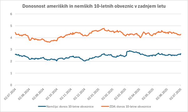 Zahtevani donosi na 10-letne ameriške obveznice so v zadnjem mesecu padli za približno 0,2 odstotne točke in trenutno znašajo okoli 4,3 %, kar nakazuje, da trg resno upošteva možnost uresničitve Trumpovih pritiskov. Drugače pa je pri kazalcih zaupanja vlagateljev, ki jih lahko merimo z različnimi parametri. Oslabitev ameriškega dolarja – ta je v prvi polovici leta v primerjavi z evrom izgubil skoraj 12 % (le v juniju 3,7 %) – ter preusmeritev kapitala v Evropo in trge v razvoju kažeta, da se zaupanje v ameriški finančni sistem zmanjšuje.