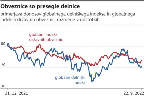 Kaj to pomeni za finančne trge? Letošnje leto je bilo za investitorje zahtevno tako na delniških kot na obvezniških trgih. Dvigovanje obrestnih mer se neizogibno odrazi v višjih zahtevanih donosih, tako za obveznice kot tudi za delnice, kar pomeni padce cen. Dobra stran je, da je veliko negativnega, tudi še nekaj dvigov obrestnih mer, v tečajih delnic in obveznic trenutno že vštetega. To nas lahko navdaja z optimizmom, da je najhujše na trgih za nami in da tudi za vlagatelje prihajajo spet boljši časi.