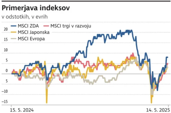 Ameriške delnice so v zadnjih dneh dobile dodaten zagon, ko je Trump napovedal sprostitev izvoza umetnointeligenčnih čipov v Savdsko Arabijo. Na drugi strani so britanske delnice doživele rast, predvsem zaradi novega trgovinskega dogovora z ZDA in znižanja obrestnih mer britanske centralne banke. V Evropi povečani infrastrukturni in obrambni izdatki podpirajo evropske delnice, ki so tudi ugodneje vrednotene.