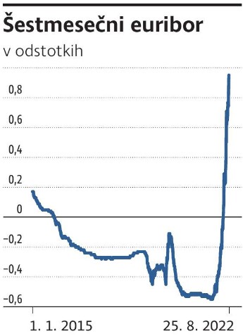 Dvigovanje obrestnih pričakovanj je v Evropi vse bolj izrazito na kratkoročnem delu krivulje, kjer je šestmesečni euribor praktično že dosegel en odstotek. Glede na to, da se pričakovanja trga glede ključne obrestne mere v naslednjem letu gibajo med 1,5 in dvema odstotkoma, je realno pričakovati, da se bodo kratkoročni euriborji še dvigovali, če ne bo prišlo do preobrata v razmišljanju centralnih bank, začenši na drugi strani Atlantika.