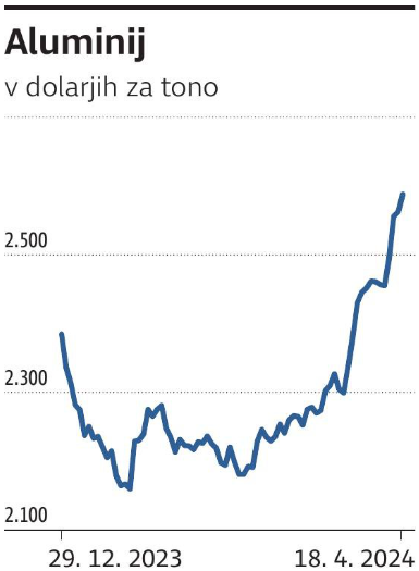 Kovine so bile podvržene podražitvam, najbolj je izstopal aluminij zaradi odziva na zadnje sankcije na ruske kovine. Konec prejšnjega tedna je Londonska borza kovin (LME) prepovedala dobavo kovin iz Rusije, vključno z bakrom, aluminijem in nikljem, kar je sledilo sankcijam, ki sta jih uvedli ZDA in Združeno kraljestvo. Nove omejitve dovoljujejo, da se ruske kovine še naprej dobavljajo, če so bile proizvedene pred 13. aprilom. Rusija je sicer zdaj največji vir kovin za LME.
