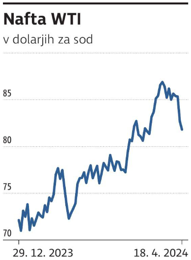 Precej presenetljivo se je pocenila nafta kljub dogajanju na Bližnjem vzhodu z iransko eskalacijo zaostrovanja. Vzrok pocenitve je v pričakovanju trga na odziv Izraela. Vsak drug odziv, razen diplomatskega dogovora, bi z veliko verjetnostjo vplival na podražitev naftnega trga. Stopnjevanje vojaške aktivnosti Izraela bi povzročilo motnjo v oskrbi z nafto iz te regije.