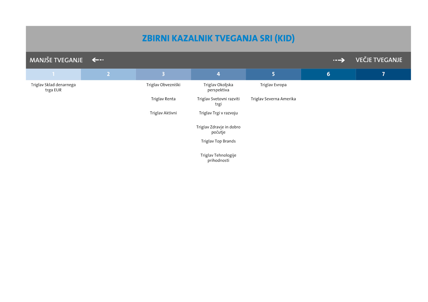 Triglav Investments d. o. o., Ljubljana. To je tržno sporočilo. Pred sprejemom katere koli končne naložbene odločitve glejte Prospekt Krovnega sklada Triglav vzajemni skladi z vključenimi pravili upravljanja (v nadaljevanju: Prospekt) z informacijami in Ključne podatke za vlagatelje (v nadaljevanju: KID). Prospekt, KID ter zadnje objavljeno revidirano letno in polletno poročilo krovnega sklada so vlagatelju v slovenskem jeziku brezplačno na voljo na vseh vpisnih mestih družbe za upravljanje ter na spletni strani družbe (www.triglavinvestments.si). Pretekla uspešnost ne napoveduje prihodnjih donosov. Predstavljeni scenariji so ocena prihodnjih rezultatov, ki temeljijo na dokazih iz preteklosti o tem, kako se vrednost te naložbe spreminja in/ali sedanjih tržnih pogojev in niso natančen kazalnik. Kaj boste dobili, bo odvisno od tega, kako uspešen bo trg in kako dolgo boste imeli naložbo/produkt.